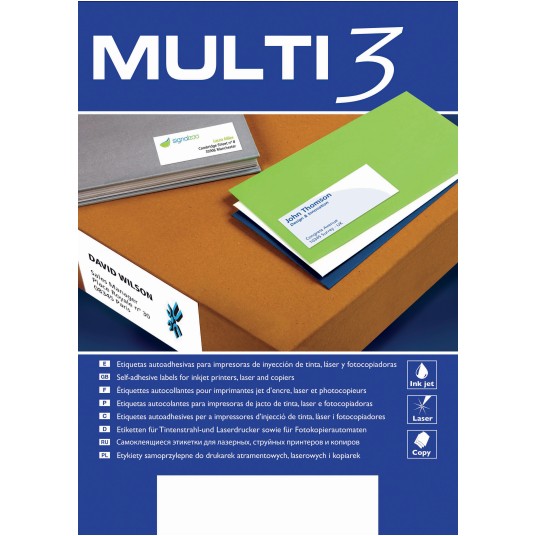 - Białe etykiety samoprzylepne - Do wykorzystania w pracy oraz w domu - Kompatybilne z drukarkami atramentowymi, laserowymi or kopiarkami - Kształt etykiet: prostokątny - Format: A4 - Stopień bieli - CIE 150 - Gramatura - 143 g/m2