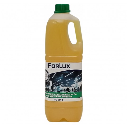 - Preparat Forlux PG przeznaczony jest do gruntownego mycia powierzchni maszyna szorującą, odpornych na środki zasadowe. - Doskonale sprawdza się również przy myciu ręcznym za pomocą mopa. - Skutecznie usuwa z powierzchni zestarzały brud, smary, oleje oraz gumowe ślady po wózkach i butach w marketach oraz zakładach przemysłowych. - Preparat Forlux PG bardzo dobrze nadaje się do usuwania wszelkich zniszczonych powłok ochronnych. - Może być stosowany także do utrzymania czystości w placówkach służby zdrowia oraz zakładach przemysłu spożywczego i gastronomii. - Atest HŻ/01260/02/2012. - Pojemność: 2l.