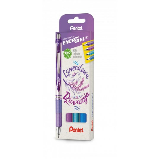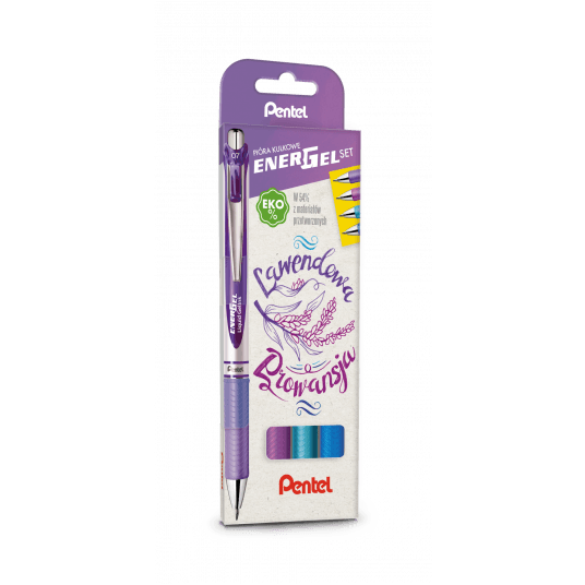 - Zestaw 4 piór kulkowych do pisania i tworzenia innowacyjnych ilustracji - EnerGel Set to kolorystyczne kompozycje z myślą o nadaniu barw Twoim notatkom - Nasze zestawy to idealny pomysł na prezent - Stworzone z myślą o osobach, które lubią mieć pod ręką intensywne kolory - LAWENDOWA PROWANSJA: niebieski, błękitny, fioletowy, lilia - Rewelacyjny tusz żelowy przyczynia się do podwyższania komfortu pisania - Nie rozmazuje się i nie brudzi, wysycha błyskawicznie - Pióro idealne dla osób leworęcznych - Metalowy klip i niezawodny system przyciskowy - Wyposażone w gumowy uchwyt, który działa antypoślizgowo - Model ekologiczny, na wkłady wymienne LR7 (0,7 mm) lub LRN5 (0,5mm) - Dbając o zrównoważony rozwój nasze pióra kulkowe BL77 sąwykonane w 54% z materiałów przetworzonych pomijając części zużywające się np. wkłady
