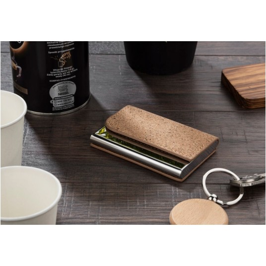 Wizytownik KIPEE jest wykonany z korka i metalu, przez co doskonale nadąża za modą na naturalne tworzywa.