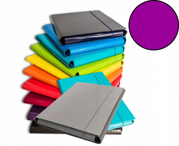 - Teczka skrzydłowa z gumką, wykonana z grubej tektury