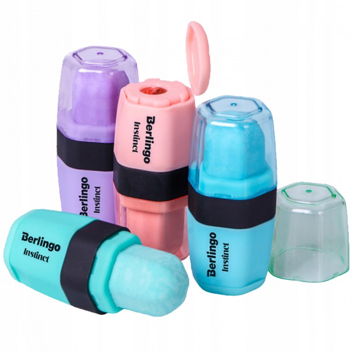 - Temperówka z gumką z serii Instinct - Dwukolorowa plastikowa obudowa wykonana jest z miękkiej powłoki "soft touch" - Pastelowe kolory w połączeniu z czarnym: różowy, lawenda, mięta, akwamaryn - Po jednej stronie znajduje się gumka wykonana z wysokiej jakości gumy termoplastycznej, po drugiej temperówka z jednym otworem na ołówki o średnicy do 8 mm - Pomiędzy nimi znajduje się pojemnik na ścinki - 4 kolory do wyboru - Jednostka sprzedaży: 1 sztuka