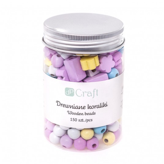 - Pastelowe, drewniane koraliki w różnych kształtach są doskonałe do tworzenia biżuterii