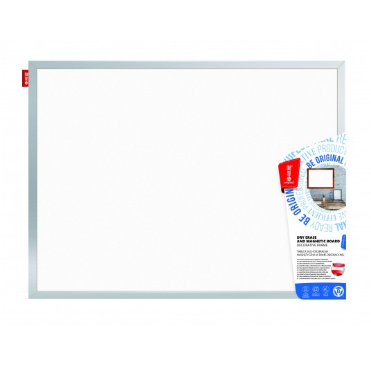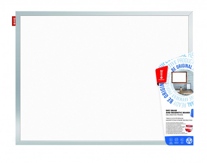 Tablica suchościeralna magnetyczna MemoBe. Właściwości suchościeralne pozwalają na pisanie po powierzchni tablicy markerami suchościeralnymi lub kredowymi. Natomiast właściwości magnetyczne dają możliwość umieszczania na tablicy rysunków, plakatów i ogłoszeń za pomocą magnesów. Powierzchnia tablicy wykonana jest z wysokiej jakości stali lakierowanej w kolorze białym. Z tyłu tablicy zastosowano pilśnię, która pełni rolę usztywnienia. Rama wykonana jest z materiału MDF w kolorze srebrnym o szer. 25 mm i grub. 20 mm. W zestawie dołączony jest komplet haczyków oraz instrukcja montażu. Możliwość montażu tablicy w pozycji pionowej lub poziomej. Tablica polecana jest jako podstawowe wyposażenie dla wszystkich jednostek edukacyjnych i instytucji biurowych. Klasyczna i modernistyczna konstrukcja oraz kunsztowne wykończenie sprawiają, że tablica doskonale wkomponowuje się w wystrój każdej klasy szkolnej, sali wykładowej, biura czy pokoju w miejscu zamieszkania. Produkt przeznaczony jest do użytku wewnętrznego. Ponadto tablica stanowi znakomite wsparcie dla nauczycieli jako pomoc dydaktyczna oraz olbrzymie udogodnienie dla liderów spotkań biznesowych, którzy mogą wzbogacać swoje prezentacje i wykłady o komunikaty wizualne, co z kolei wpływa na ich szybkie zapamiętywanie. W domu tablica jako nośnik informacji przejmie rolę świetnego pomocnika planistę i organizatora codziennych zajęć zarówno dla dzieci, młodzieży i dorosłych. Pozwoli na uporządkowanie notatek, prezentacje rysunków dziecka i innych ważnych informacji.Tablicę cechuje niezwykła trwałość i sztywność dzięki zastosowaniu wysokiej jakości materiałów, które zapewniają bezpieczeństwo podczas ich montażu i użytkowania. Dzięki wysokiej jakości powierzchni, prezentowane na tablicy treści są dobrze widoczne i czytelne. szczególną zaletą jest bardzo dobra ścieralność markera bez pozostawiania smug i plam na powierzchni tablicy. Okres gwarancji na powierzchnię wynosi 10 lat.Czyszczenie tablicy - za pomocą miękkiej gąbki lub ściereczki. Do pisania po tablicy należy używać wyłącznie markerów przeznaczonych do tablic. Zaleca się systematycznie czyszczenie i konserwację powierzchni za pomocą dedykowanych płynów do tablic.Tablice suchościeralne magnetyczne MemoBe posiadają Certyfikat Zgodności, który potwierdza, że wyrób spełnia wymagania zawarte w normie PN-EN 14434:2010, tzn. jest bezpieczny podczas jego montażu i użytkowania. Produkt opatrzony jest znakiem B (Bezpieczeństwo).