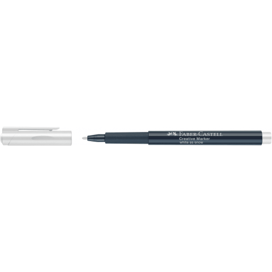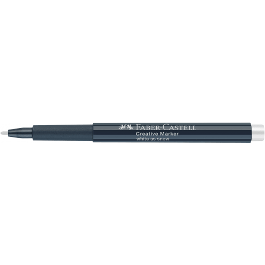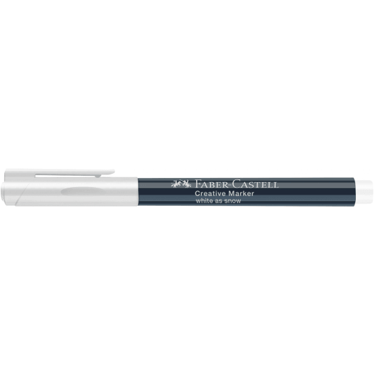 Pisak kreatywny FABER-CASTELL.Pisak do wszystkich powierzchni – zarówno absorbujących jak i nie absorbujących (papieru, szkła, tektury, metalu, tworzyw sztucznych, folii, porcelany). Nie przesiąka przez papier. Nie rozmazuje się, odporny na zachlapania. Po utrwaleniu w piekarniku w 160°C wodoodporny. Od razu gotowy do użycia: nie trzeba pompować ani potrząsać. Tusz na bazie wody, bez zapachu. Szerokość linii pisania: 1,5 mm. Kolor: biały (white as snow).Dostępny w 2 kolorach.
