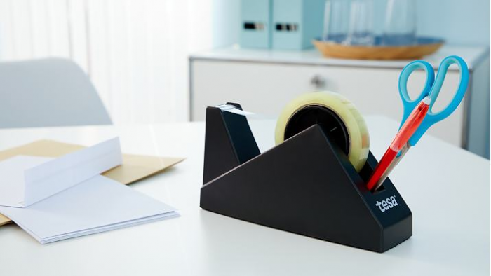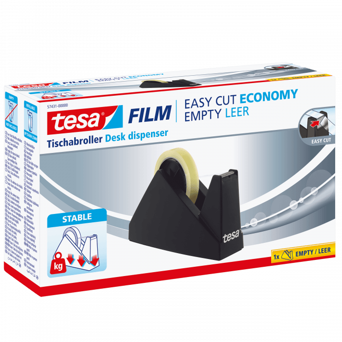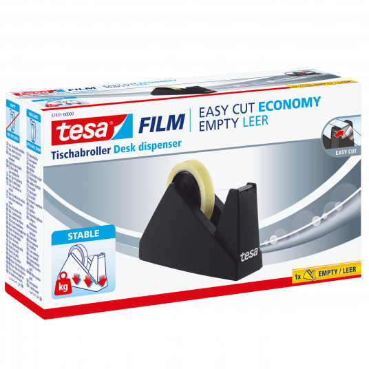- Dyspenser biurkowy Economy Tesa Easy Cut® to klasyczny dyspenser taśmy samoprzylepnej, do zastosowań w domu i w biurze - Przeznaczony do każdego rodzaju taśmy tesafilm® o szerokości 25 mm i długości 66 m - Praktyczny mechanizm zatrzaskowy pozwala na łatwą i szybką wymianę taśmy - Ząbkowane ostrze zapewnia precyzyjne i proste cięcie, a co za tym idzie schludne stosowanie taśmy do dokumentów, prezentów, kwiatów lub paczek - Podstawa antypoślizgowa - Kolor: czarny