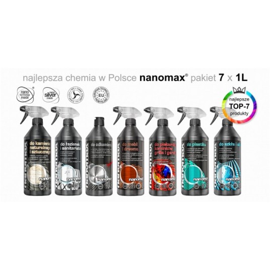Zestaw TOP-7 Nanomax 1 l płynów do czyszczenia i higieny w twoim domu.